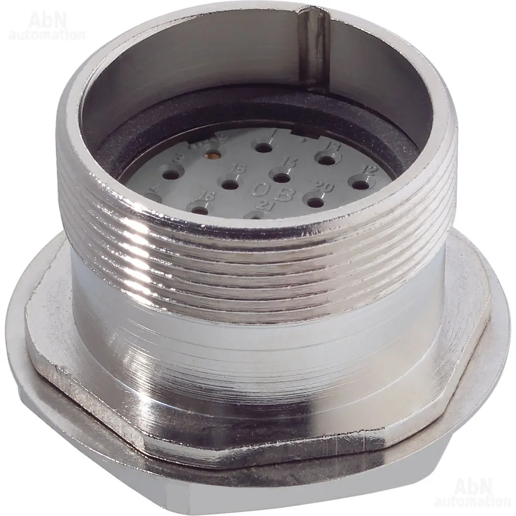Тип: разъём круглый сигнальный; Тип конструкции 01: прямой; способ присоединения 01: резьбовой; способ присоединения 02: резьбовой; Размер резьбы 01: M27; Размер резьбы 02: M25; Тип контакта 01: розетка; Тип контакта 02: розетка; PIN 01: 21; Номинальное напряжение, V: 24 AC ; Степень защиты: IP 67; Материал контакта: CuZn
