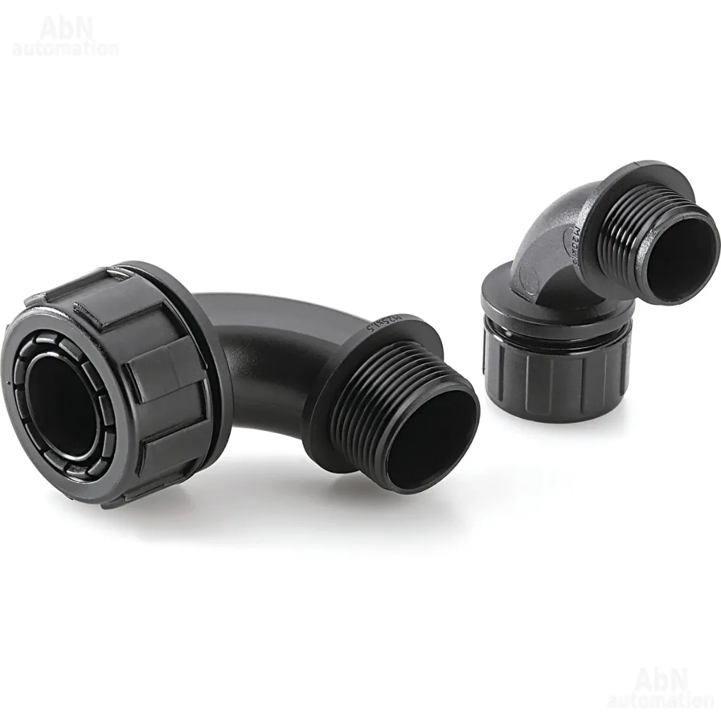 Тип: кабельный ввод для гофротрубы; Присоединительная резьба: PG21; Материал корпуса: PA; EMC: нет; Тип конструкции 01: угловой; Без галогена: да
