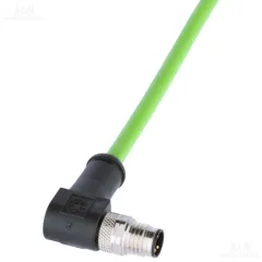 Тип: кабель интерфейсный; Тип конструкции 01: угловой; Тип конструкции 02: открытый конец кабеля; способ присоединения 01: резьбовой; способ присоединения 02: кабель открытый; Размер резьбы 01: M8; Тип контакта 01: вилка; PIN 01: 4; Степень защиты: IP 67; Категория кабеля: Cat.5e; Количество жил: 4