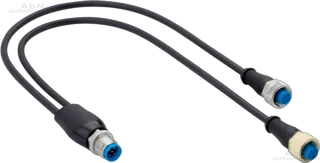 Тип: Y-разветвитель; Тип конструкции 01: прямой; Тип конструкции 02: прямой; способ присоединения 01: резьбовой; способ присоединения 02: резьбовой; Размер резьбы 01: M8; Размер резьбы 02: M12; Тип контакта 01: розетка; Тип контакта 02: вилка; PIN 01: 3; PIN 02: 4; Степень защиты: IP 67; Способ присоединения разъемов: M8; Количество пинов разъемов: 3